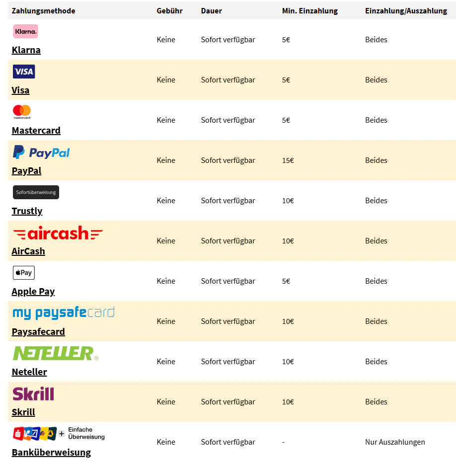 Was die Geschwindigkeit angeht: Einzahlungen sind in der Regel sofort da. Bei Auszahlungen arbeiten wir mit einem automatischen System; in Einzelfällen kann eine manuelle Prüfung nötig sein, die bis zu 24 Stunden dauern kann.
