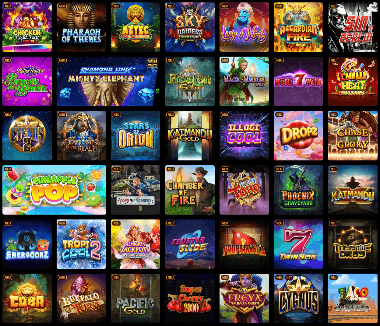 Wir aktualisieren unsere Lobby regelmäßig – und 2026 setzen wir noch stärker auf Slots, die moderne Mechaniken mit klaren Themes verbinden. In der „Neu“-Kategorie findest du zum Beispiel Titel, die bereits durch Community-Bewertungen und frische Features auffallen: